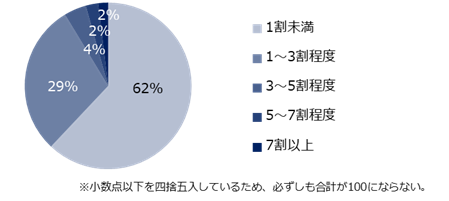 「引きとめられたミドル世代のうち、転職を思いとどまる方はどの程度いますか?」と質問すると、62%と半数以上の転職コンサルタントが「1割未満」と回答しました。