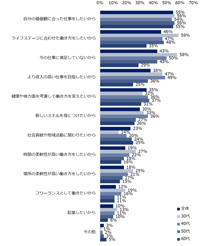 9割がセカンドキャリアについて検討。検討理由は「価値観に合う仕事をしたい」。