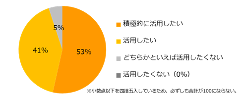 派遣先の職場でAIが導入されている方に、今後のAIの業務活用についてどのように感じるか質問すると、94%とほとんどの方が「活用したい」(積極的に活用したい:53%、活用したい:41%)と回答しました。活用したい/したくない理由も紹介します。